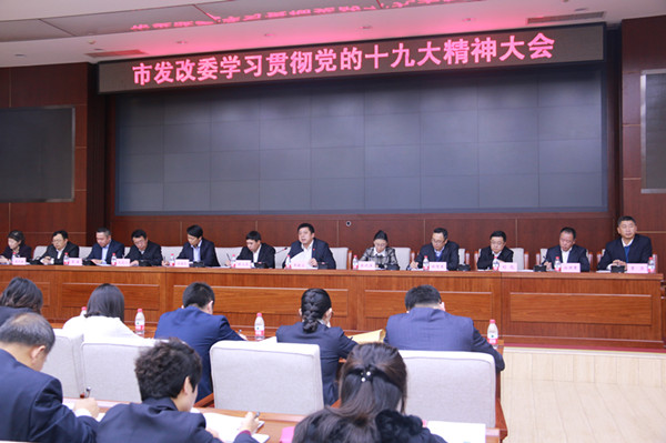 10月30日,市发改委召开全委干部党员大会,学习宣传党的十九大精神,传达学习王兆力书记在市委常委(扩大)会议上的讲话精神,对贯彻落实党的十九大精神和市委常委会议精神作出全面动员部署。